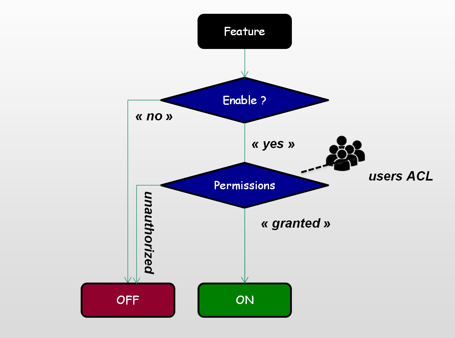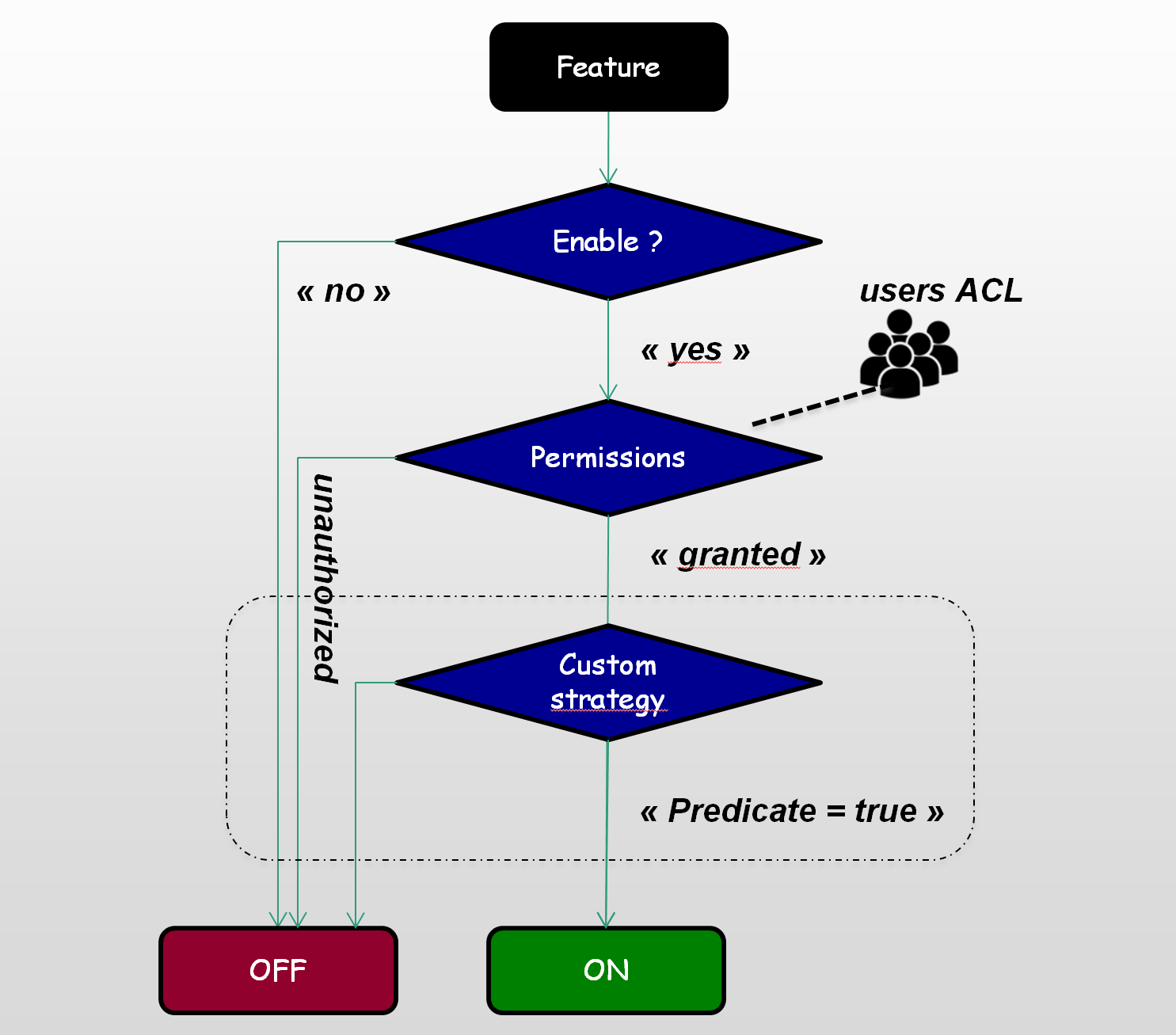 Enable features not only with flag values but also drive access with roles and groups (Canary Release). Different frameworks supported starting by Spring Security.